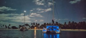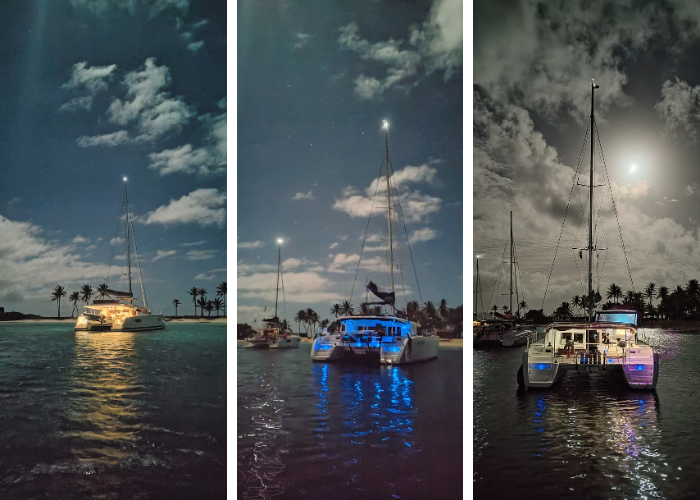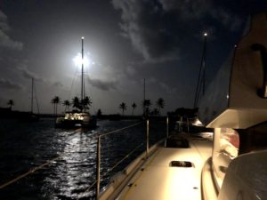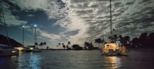 Niemal o każdej porze doby spodziewajcie się „follow me” w postaci mooring boy’a, któremu zwykle trudno odmówić, bo jak podkreśla, pomoc w cumowaniu do boi to jest jego praca. Cóż, pierwszy dzień żeglugi, jeszcze na zmęczeniu, noc…wspierajmy potrzebujących i dajmy „chłopu” (mój syn nastolatek tak mówi) zarobić 30 EC, a jak nie macie jeszcze dolarów wschodnio karaibskich EC (ang. Eastern Carribean Dollars), to chociaż 5 EUR lub lepiej 5 USD, bo te są tu bardziej cenione (odwrotnie jak u nas).